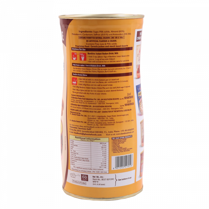 Badam and Saffron have been well known to possess natural qualities that are good for both body and mind also helps in boosting immunity and strength. Bambino Badam Drink Mix. Sugar 82 Almond8 Skimmed Milk Powder Cardamom Saffron.